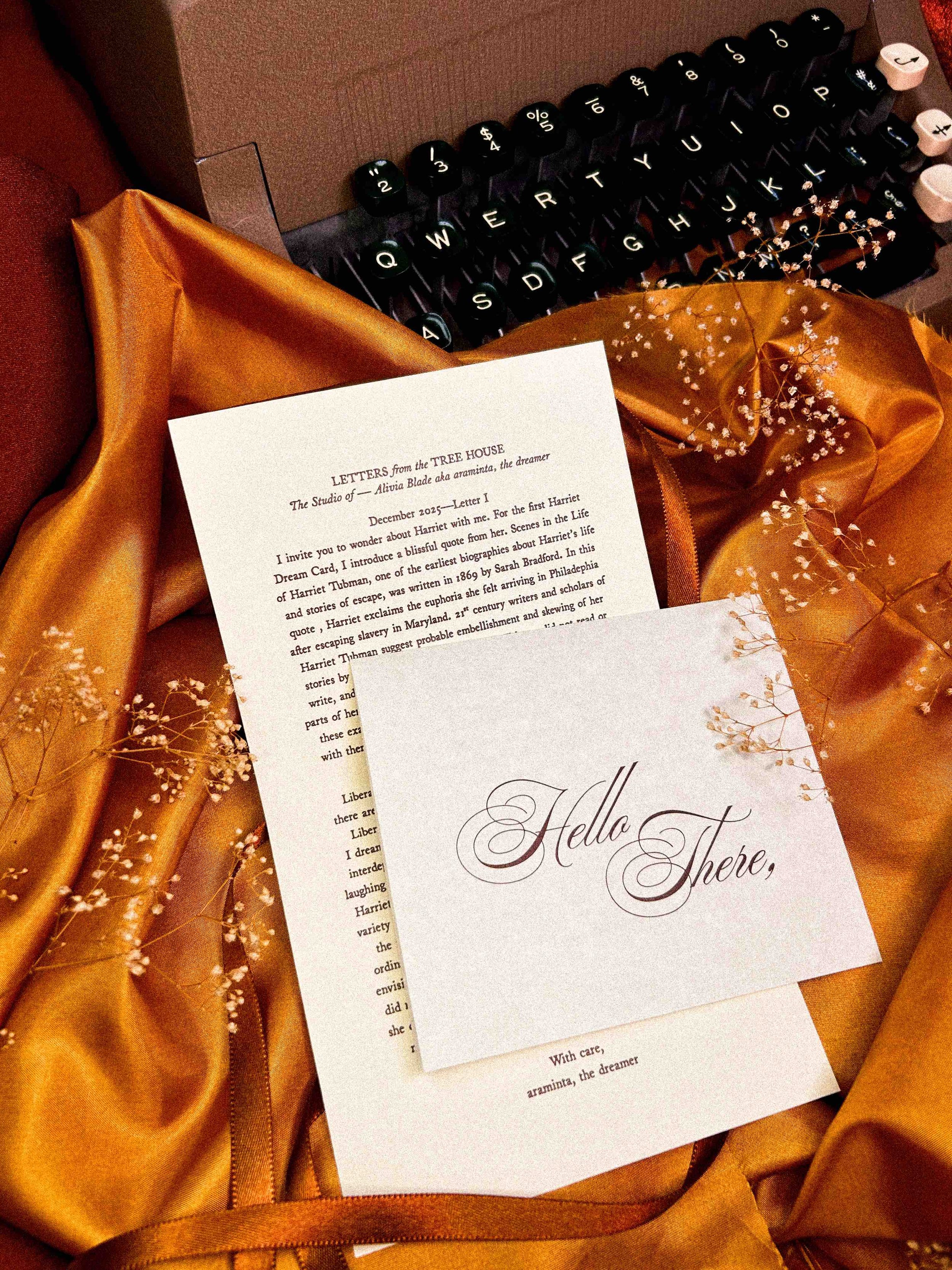 You will receive a letter accompanied by a “Harriet Dream Card,” an oracle-style card highlighting a special aspect of the month’s letter.